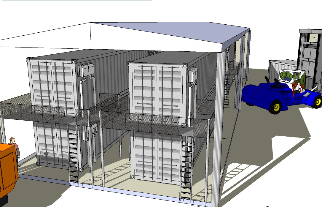Контейнеры можно также устанавливать в два этажа, тем самым достигая экономии требуемой площади.