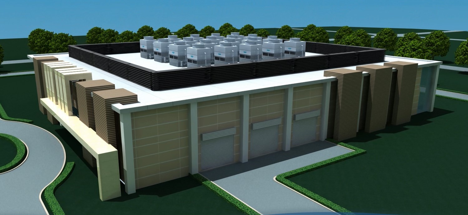 Внешний вид типового здания для размещения стационарного ЦОД показан на рис. 4. На крыше видны теплообменники климатической установки.