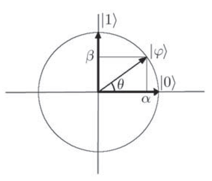 Поэтому, состояние квантовой системы, состоящей из одного кубита, может быть описано с помощью только двух вещественных параметров — углов ϕ и θ.