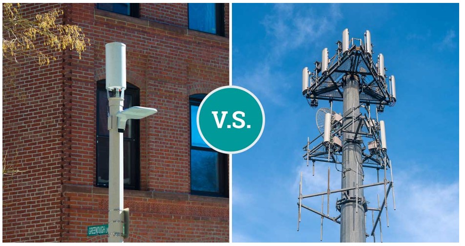 На рисунке ниже показан пример Small Cell (слева) по сравнению с обычной базовой станцией[1].