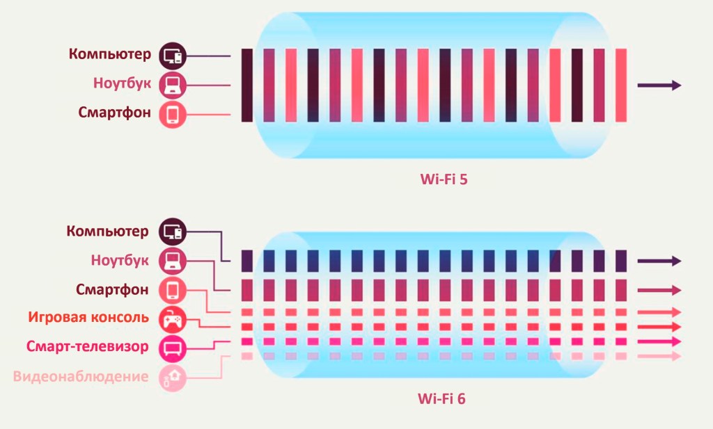 Это позволяет подключать в зоне действия роутера Wi-Fi 6 гораздо больше устройств, чем раньше, с гораздо меньшим влиянием их друг на друга.