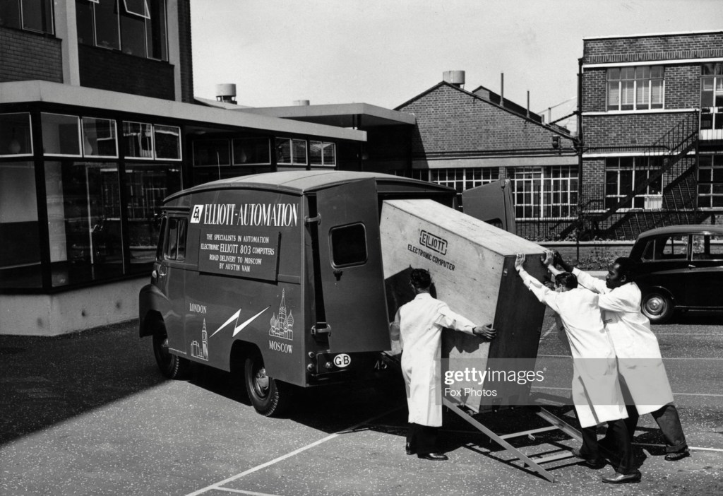 4 июня 1960 года компьютер Elliot 803 британской компании Elliot Automation был отгружен в Москву для выставки Ассоциации британских производителей научных приборов (British Scientific Instrument Manufacturers Association). Компьютер был доставлен через всю Европу на автофургоне Austin 32 (на фото). Выставка была организована по запросу Советского правительства, которое и определило именно такой способ доставки. Компьютер Elliott 803 был одним из первых компьютеров, построенных полностью на транзисторах и предназначался для промышленных вычислений и бизнеса.