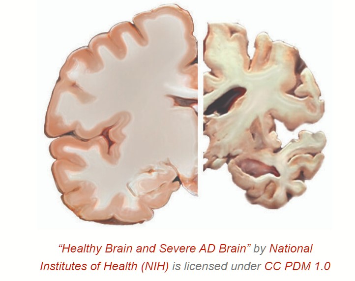 Болезнь Альцгеймера заставляет белок, называемый амилоидом, накапливаться в пространстве между клетками мозга. Со временем белки заставляют клетки мозга умирать, собираясь в амилоидные бляшки. Ещё одна отличительная черта болезни Альцгеймера — это узлы в головном мозге. Обычно белок, называемый «тау», важен для перемещения веществ по клетке мозга. Но при болезни Альцгеймера тау-белки слипаются и создают узлы между клетками мозга. Эти узлы блокируют связь между клетками и снижают активность мозга, что в свою очередь, мешает клеткам сохранять информацию в памяти.