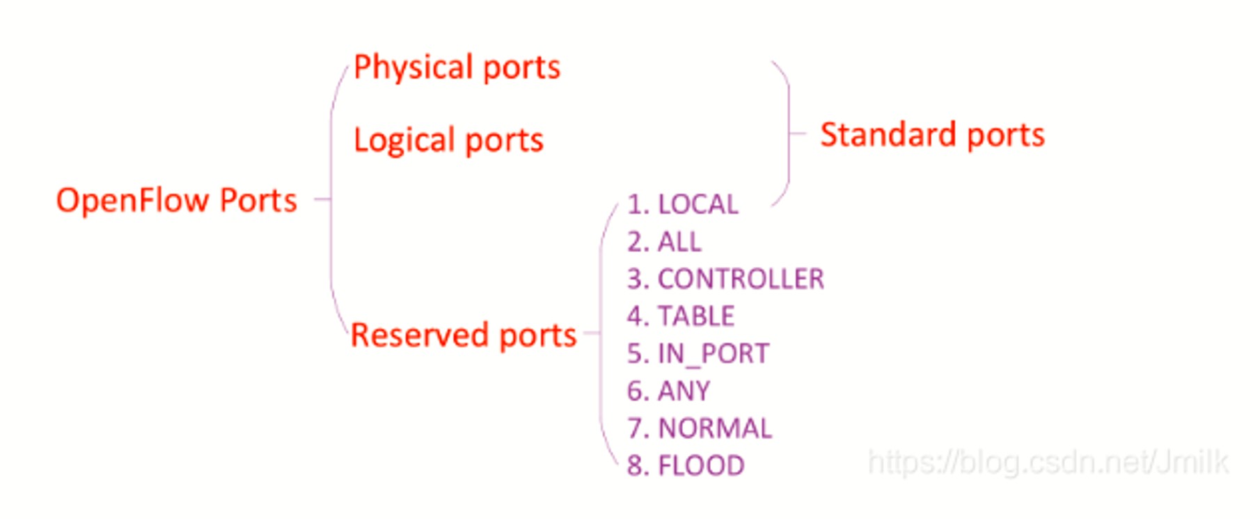 Набор портов OpenFlow может быть идентичен набору сетевых интерфейсов на оборудовании коммутатора. Однако, некоторые сетевые интерфейсы могут быть отключены, и ПО коммутатора OpenFlow может назначать дополнительные порты.