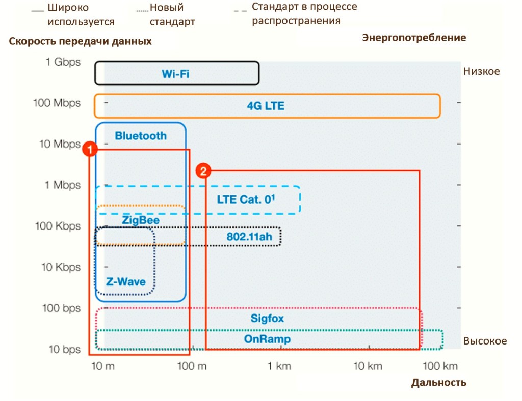 К LPWA (Low Power Wide Area) относятся сети на основе следующих протоколов IoT и M2M: