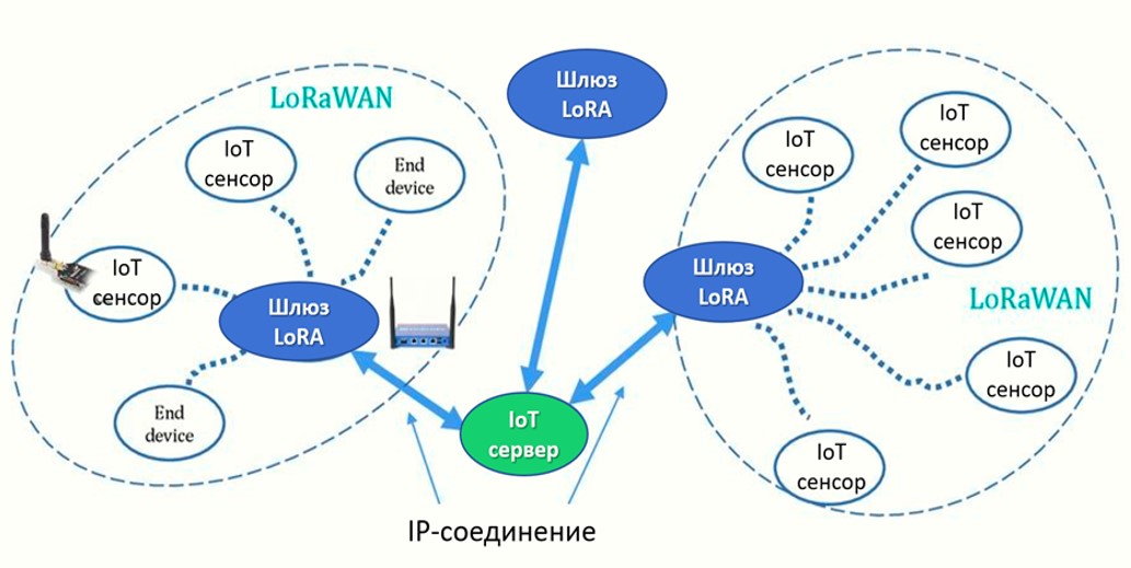 - Шлюзы подключаются к серверу сети IoT по стандартному протоколу IP и преобразуют радиочастотные пакеты от конечных узлов в стандартные IP-пакеты.