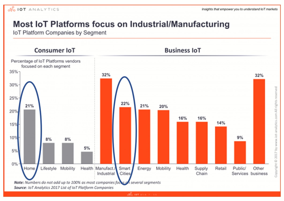 - В потребительском секторе (Consumer IoT) – большинство решений нацелены на рынок домашней автоматизации