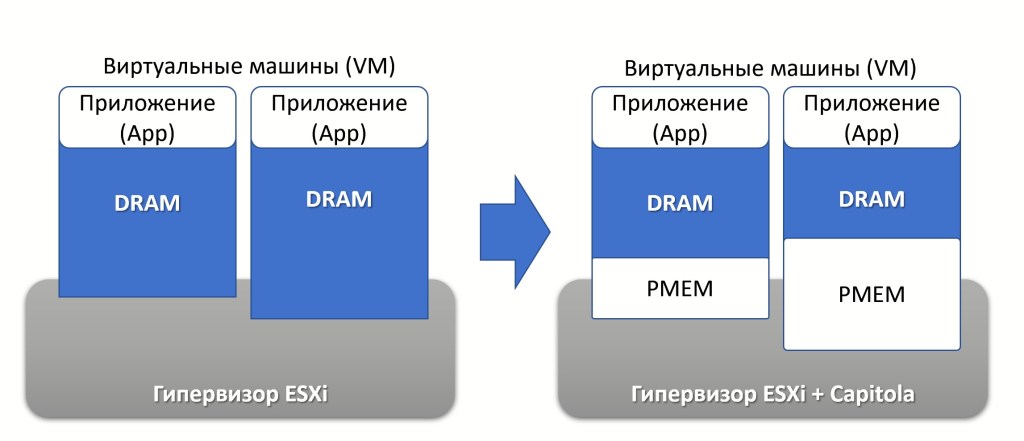 Так и теперь, эта концепция получила своё воплощение в проекте VMware под названием Project Capitola. Он представляет собой расширение всем ИТ-специалистам известного серверного гипервизора ESXi, который ранее мог виртуализовывать только вычислительные ресурсы. Однако, ресурсы оперативной памяти до сих пор виртуализовать не удавалось.