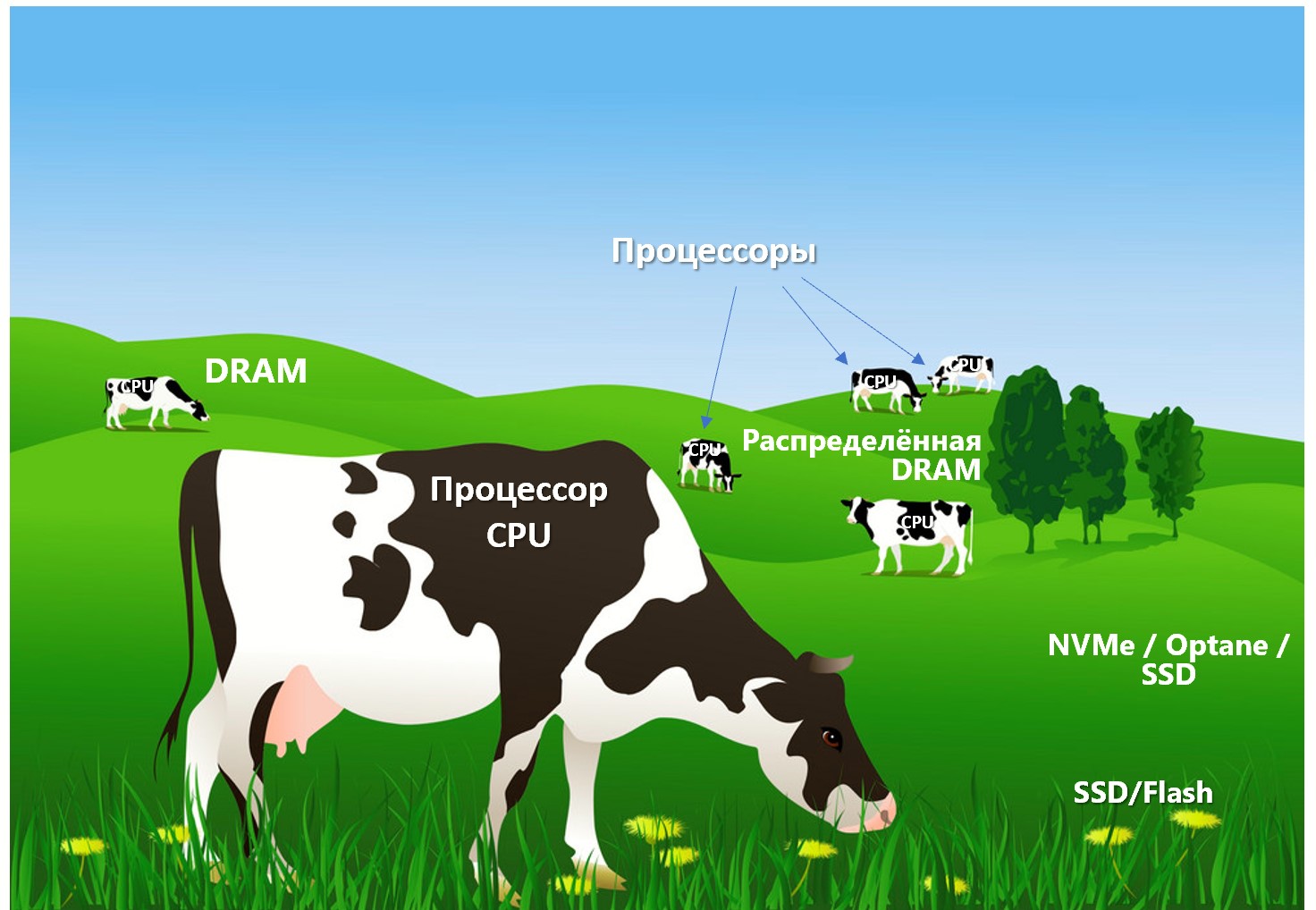 Теперь на очереди – вертикальное масштабирование виртуализация памяти по всем слоям иерархии ОЗУ – СХД, а также горизонтальная масштабирование с создание единой фабрики памяти в масштабах распределённых дата-центров.