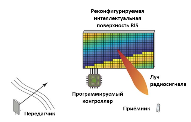 Поверхности RIS могут быть размещены в радиоканале между передатчиком и приемником, чтобы управлять отражением сигнала. RIS могут использоваться для направления сигналов к приемнику, что приводит к улучшению приема или качества связи (технология Beamforming – формирование луча).