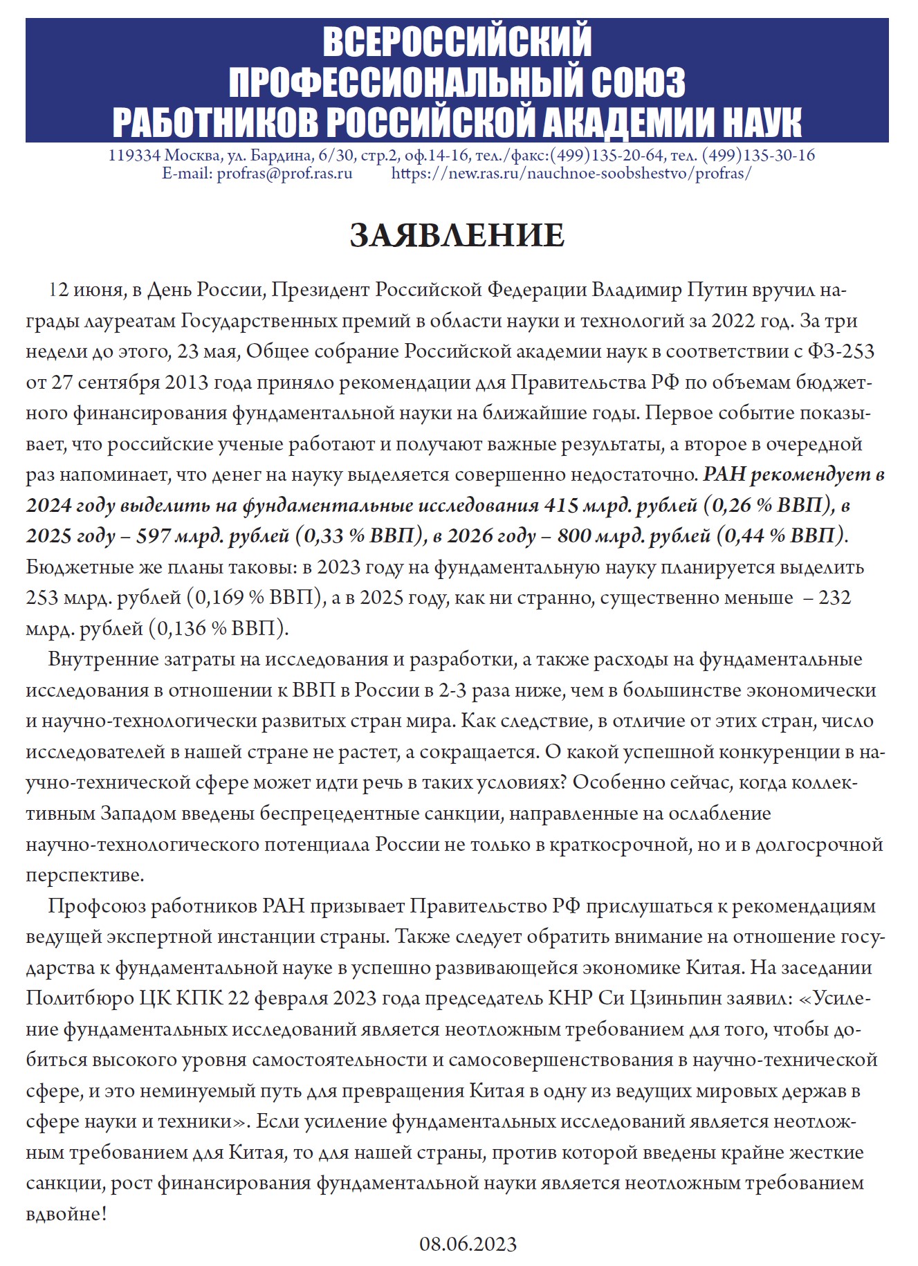 Всероссийский Профессиональный Союз работников Российской Академии Наук.
