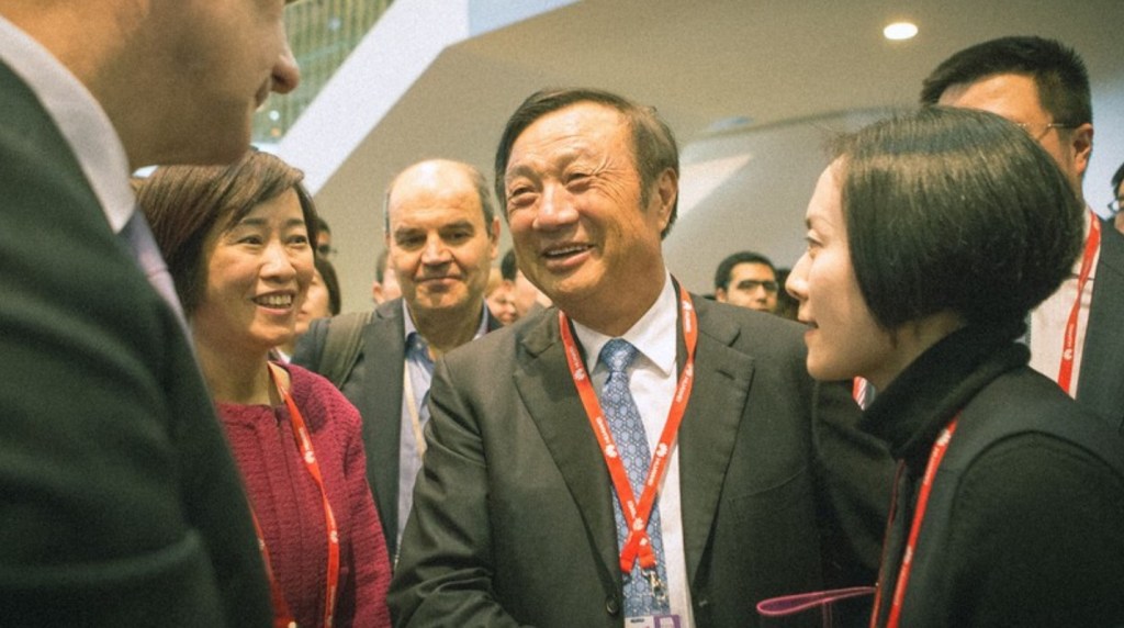Основатель и лидер компании Huawei Рэн Чженфей (Ren Zhenfei) в окружении сотрудников компании
