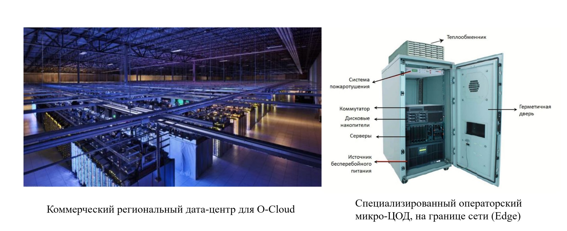 Физической инфраструктурой для компонентов RAN, в данном случае, является, оборудование стандартных серверов и систем хранения, находящееся в коммерческих центрах обработки данных (ЦОД), либо в специализированных микро-ЦОД операторов, которые находятся на границе сети (Edge) вблизи базовых станций/
