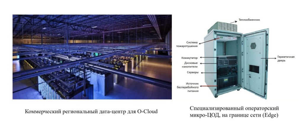 Рисунок 3. Элементы инфраструктуры для размещения функций RAN (на фото слева, в качестве примера облачного ЦОД, показан один из дата-центров Google Cloud).