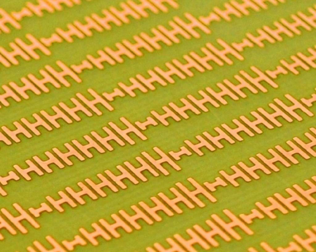 Каждая метачастица содержит два металлических трапезоида, центральную металлическую полосу, которая тянется по всей вертикальной линии метачастиц, и два PIN-диода.