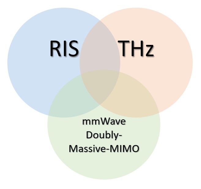 - Коммуникации двойного массированного MIMO в миллиметровом диапазоне (mmWave Doubly-Massive-MIMO)[1];