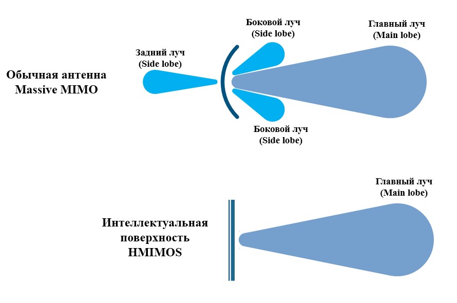 Основные характеристики интеллектуальных поверхностей HMIMOS, которые их отличают от massive MIMO и традиционных антенных систем, следующие: