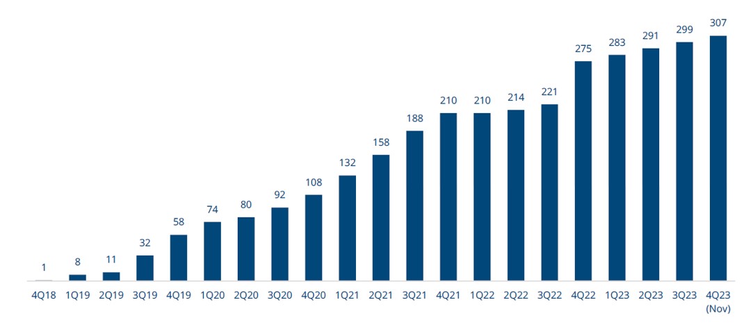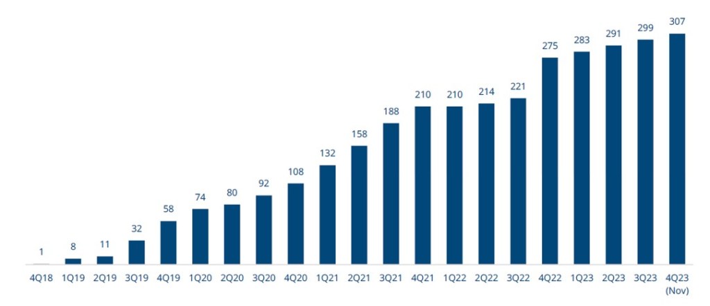 Рост номенклатуры производимых моделей устройств CPE FWA также сильно впечатляет. Особенно бурный рост наблюдался в 2021 году, а в нынешнем году появляется в среднем 7-8 новых моделей CPE FWA в квартал.