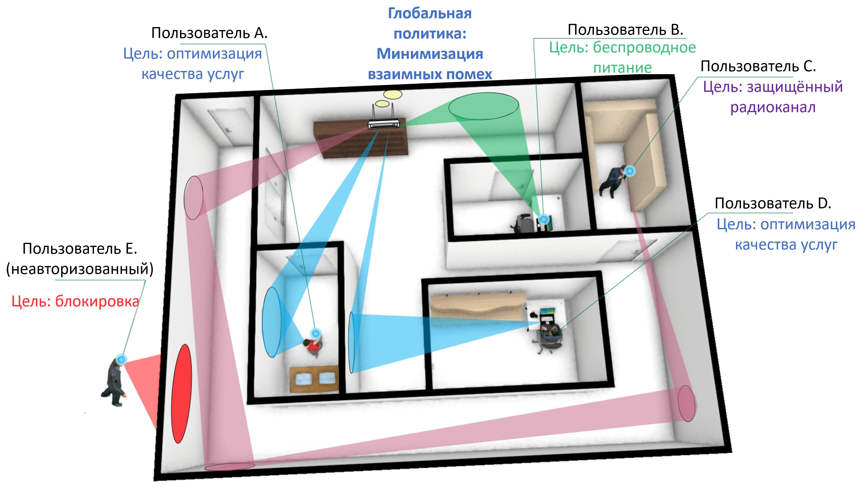 Рис. 2. Пример сценария программируемой радиосреды локального беспроводного доступа (источник: [6]).