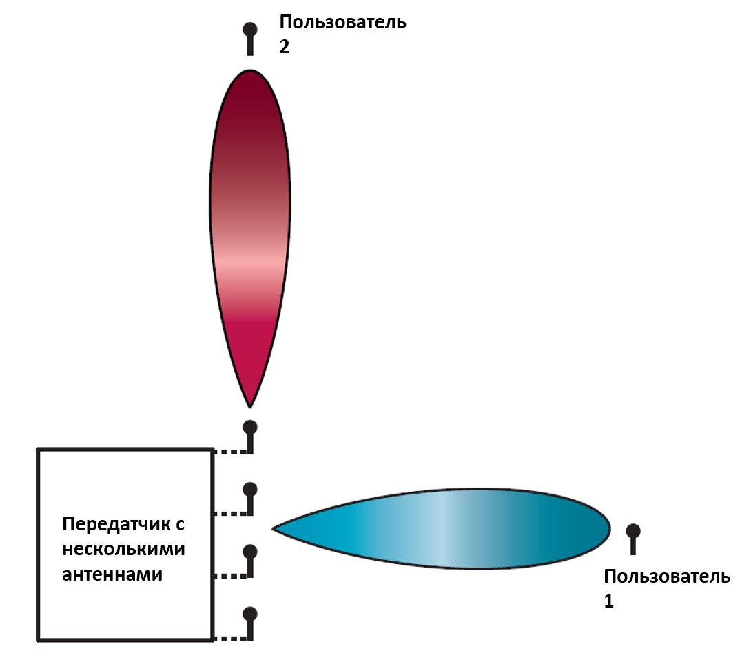 Теперь рассмотрим преимущество пространственного мультиплексирования многих пользователей.